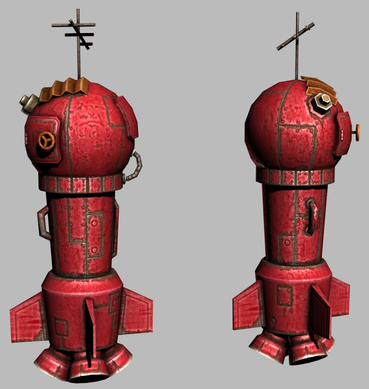 He's gotten a first pass done on the rocket texture sheet. We're tweaking this a bunch, and he's already started on the changes for it, but we'll be getting the animation done for its cut scene this week. Should be fun.