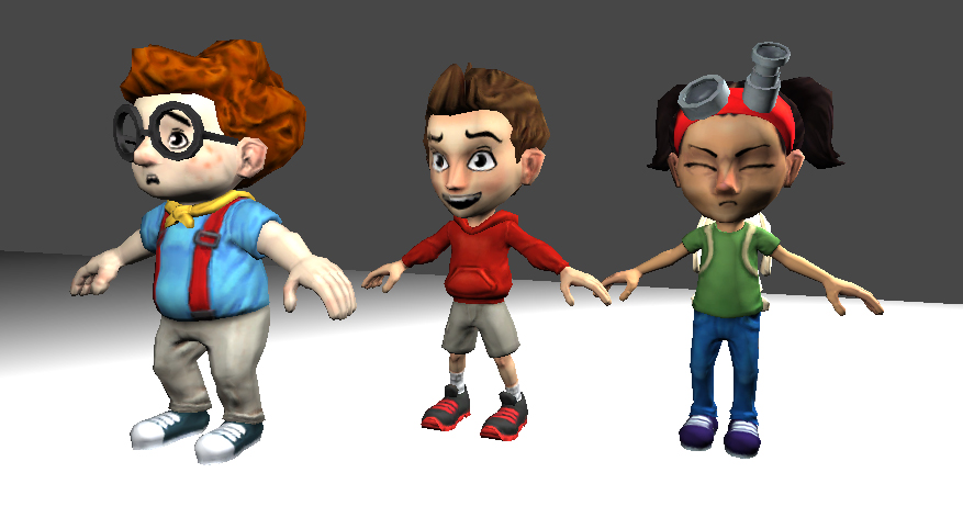 We got a very cool little script running in our game now that was quick to put together and adds a very subtle but important feature in bringing our characters to life - we can swap textures on the fly now, and we tested it first by having the kids blink their eyes randomly every two to six seconds. It's a little thing, but it really does add to giving them some life. With this feature, we'll be able to swap in other "emotion" texture sheets as needed, like if one of the kids is distressed or if they do something correctly.