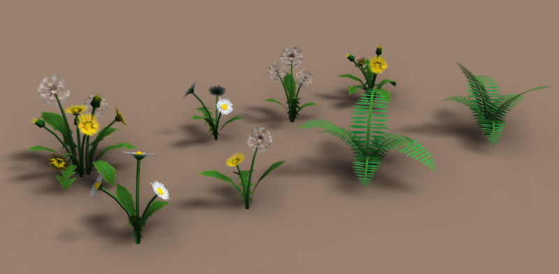Finally, he also worked on making some more low-poly terrain assets for the game, little bits of weeds and stuff we can put around in our environment to help tell the story.